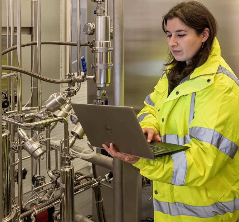Inside the bioreactor, microbes consume the gas and multiply, forming a protein-rich biomass.